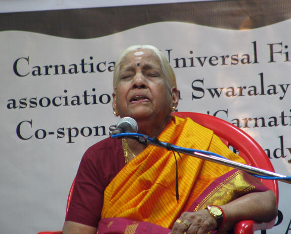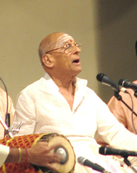 Tiruvarur Bhaktavatsalam. Looking on is disciple R. K. Shriramkumar
