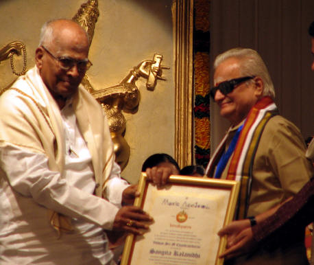 Vidwan M. Chandrasekaran receives the 'Sangita Kalanidhi' title from